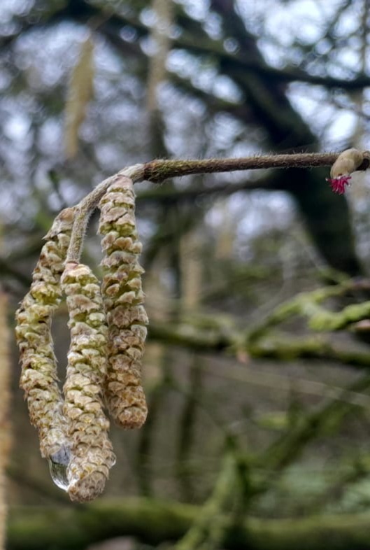 Catkins are designed to catch the wind and spread pollen from the male part of the plant to the relatively inconspicuous female flower. Many trees are wind pollinated so they have no need for showy flowers or elaborate scents to attract insects. There is a world of wonder in the way trees ensure fertilisation and subsequent dispersal of seed. They really have it covered. Trees that have wind fertilisation often have wind dispersal. Catkins can be seen on trees such as Birch and Hazel for example , at this time of year.