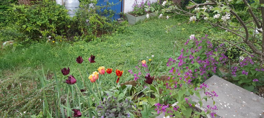 They welcome and encourage wildlife giving food and shelter in the form of undisturbed undergrowth, perfect for insects, Hedgehogs and other small mammals, more appropriate then any shop bought Hedgehog house! Their lawn is a variety of wildflowers, perfect for different pollinators and home to a colony of ground nesting bees!
