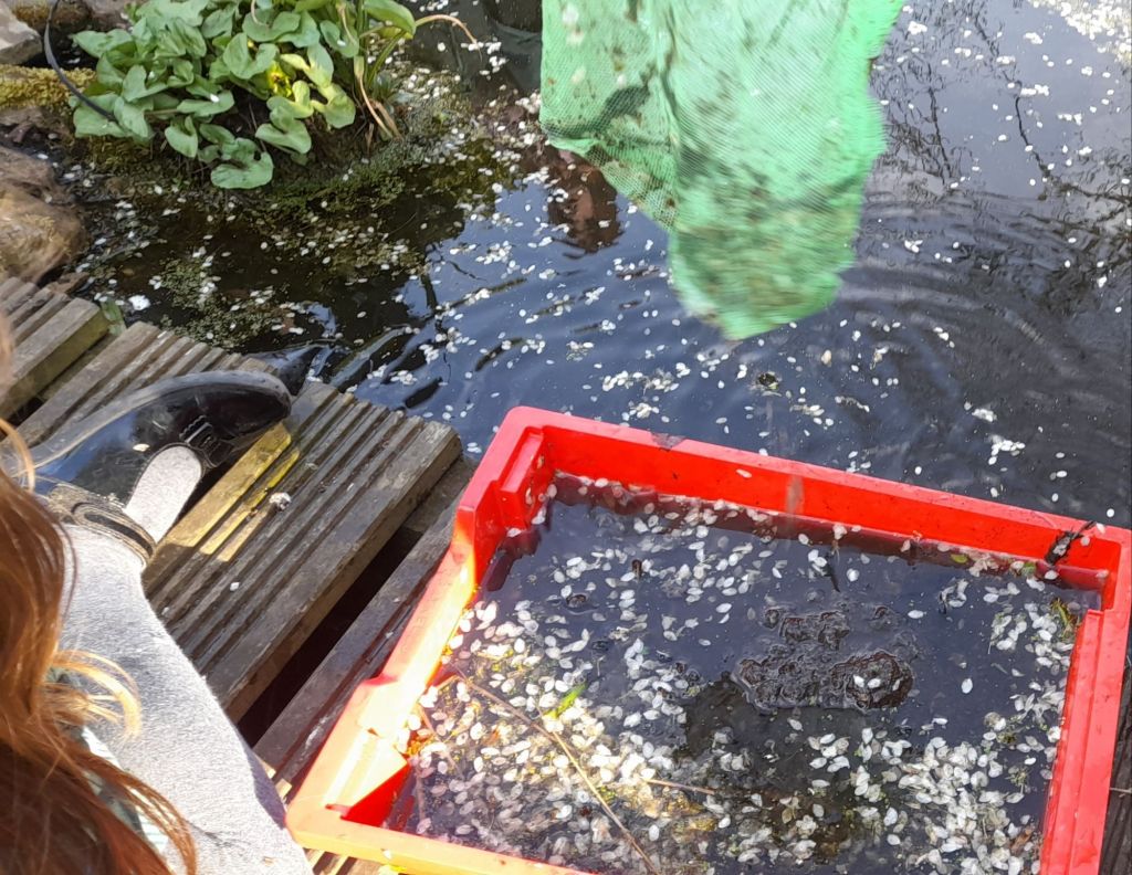 Yesterday, we had the privilege of helping the children in Willow Farm’s nature explorer group learn about the importance of ponds. It is an important lesson to learn about the respect for this vital habit and what they can do to help it flourish. After an assessment of the pond life that they have, they learnt about the plants at the bottom of the food chain that will support life that they’re trying to encourage.