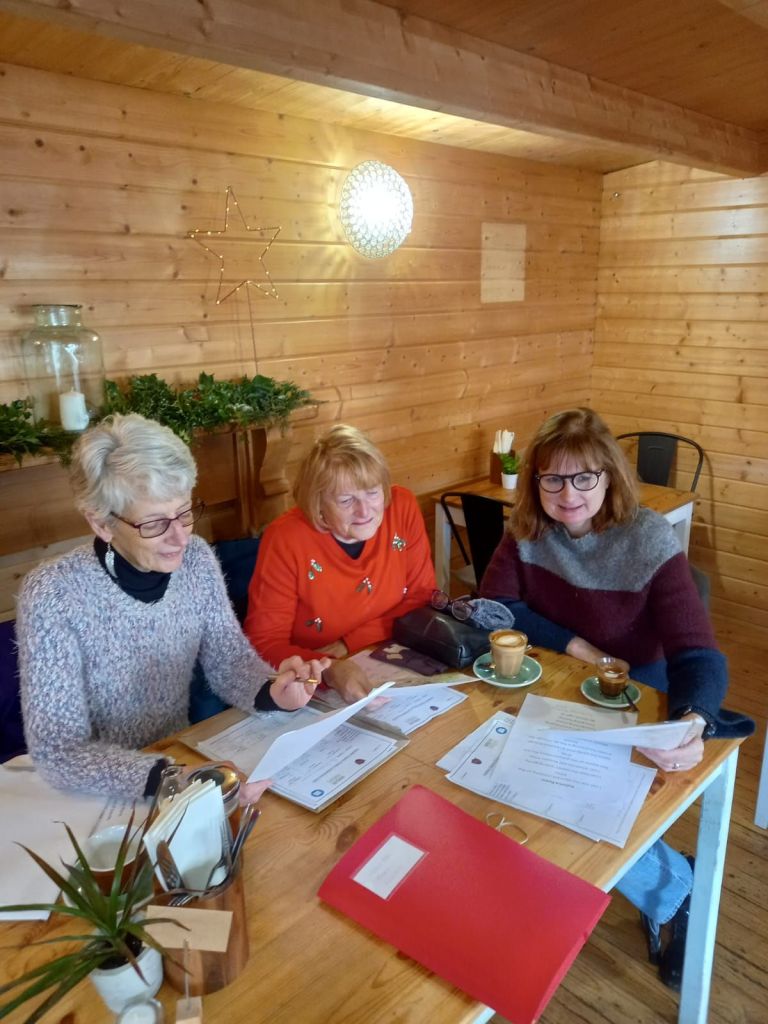 The tough decision to choose the winners fell upon the shoulders of three volunteers from Lowdam Library in the comfort of Thyme Cafe .
