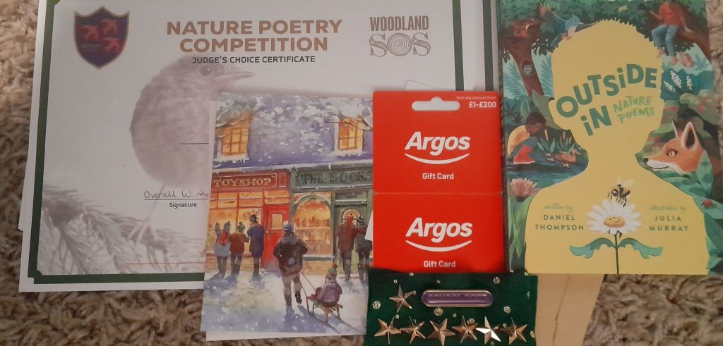 The successful children each recieved a certificate (designed by CPM), and a star badge. The Overall winners also recieved a ‘School Poet’ badge and a gift card for Argos. Each School was then presented with a Poetry book ‘Outside In’ written by Daniel Thompson.