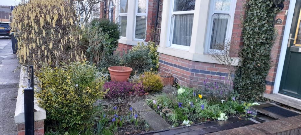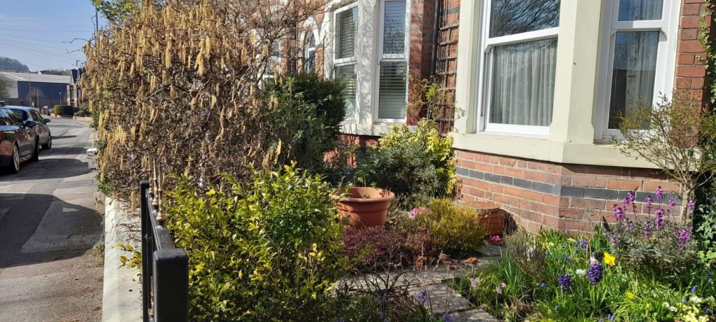 I have always enjoyed having a garden and remember my mother very fondly when I’m gardening. At the moment our back garden is mainly for the benefit of my husband’s Guide dog but I really enjoy birdwatching in the mornings and growing some small patio fruit trees. We have a mixture of shapes and sizes of foliage, different colours and things that we can have in pots so they’re safe from the dogs and it’s amazing what comes when we do that. I feed the birds every morning if I can, we have a pretty tame blackbird visiting and I have to be careful not to hit it when I am scattering mealworms under the shrubs. I am writing this sitting in the garden and I can hear insects buzzing around the various different trees and flowers and I can hear the sparrows and blackbirds, wood pigeons and nearby magpies, it’s an absolute joy. In the front garden we try plant things for perfume and colour and it’s sort of a cottagey garden where things tend to go where they feel like, but that’s fine by me and again we have wildlife out there – we mainly have invertebrates mainly bees and some butterflies buzzing around and that is lovely.