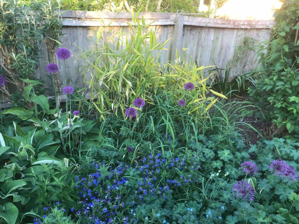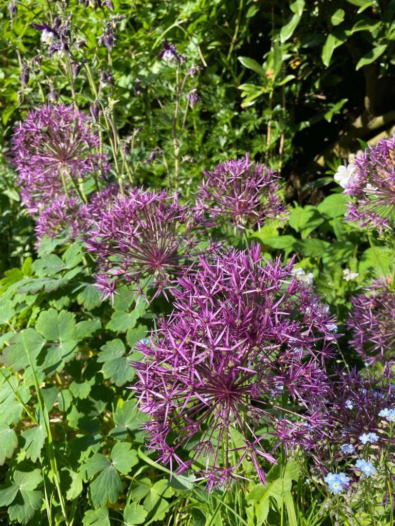We love a more natural garden and try to encourage wildlife in with lots of flowering plants and ground cover. May is my favourite time of year with the alliums shooting up all over. We have lots of birds and insects and a hedgehog visits every evening.